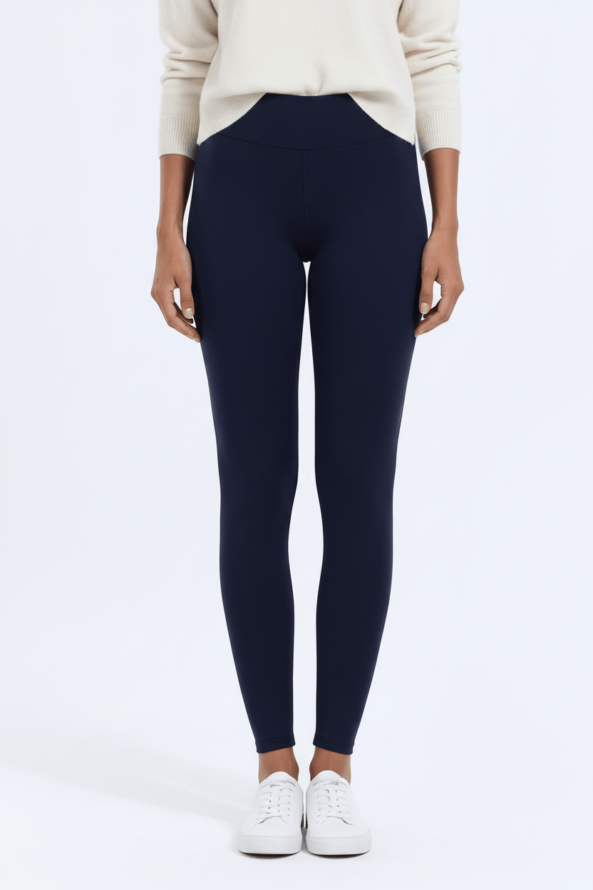 TeddySherpa™ Ultra-Cozy High-Rise Yoga Band Leggings in Navy, front view, full-length, neutral pose A