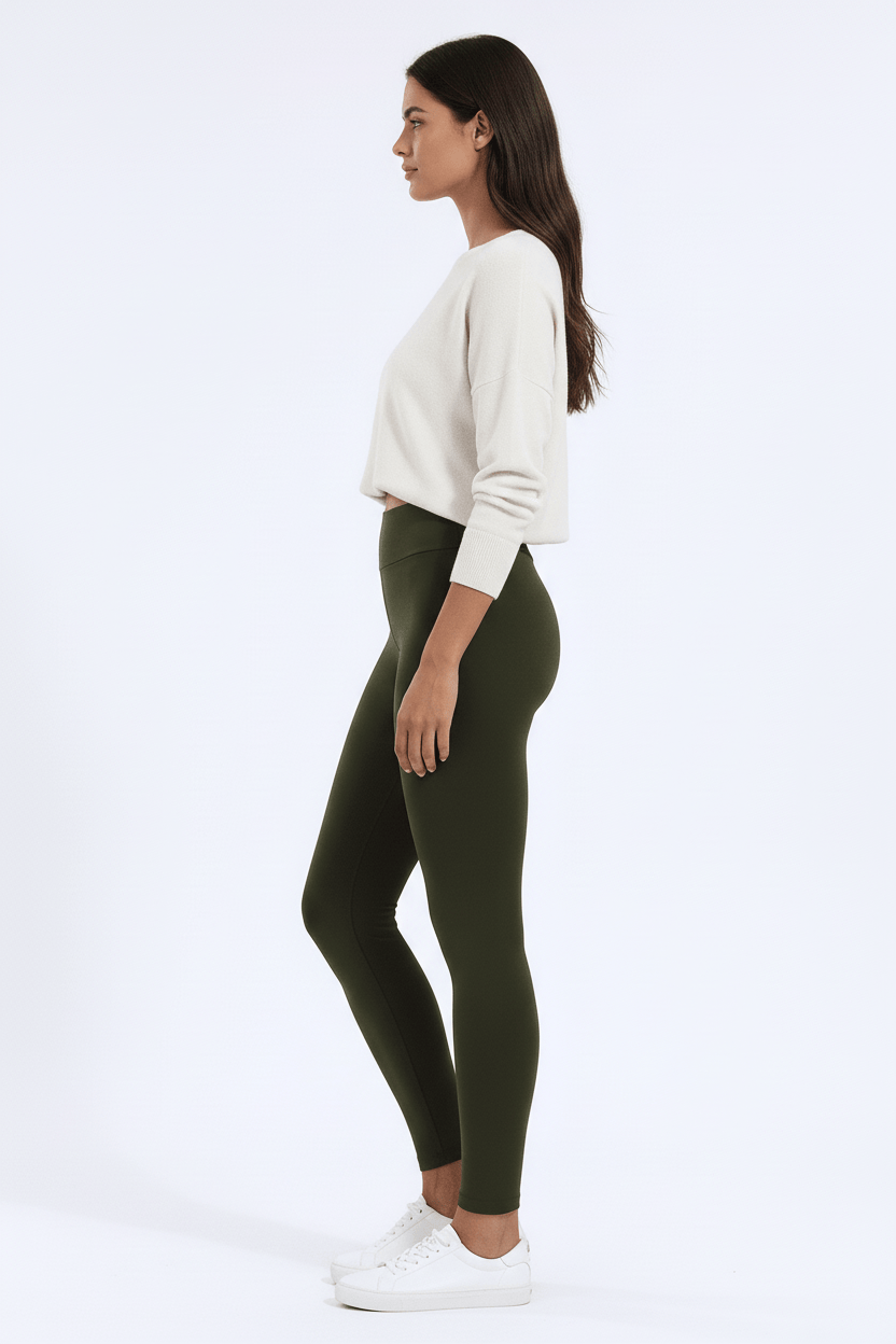 TeddySherpa™ Ultra-Cozy High-Rise Yoga Band Leggings in Cocoa Olive, side view, full-length D